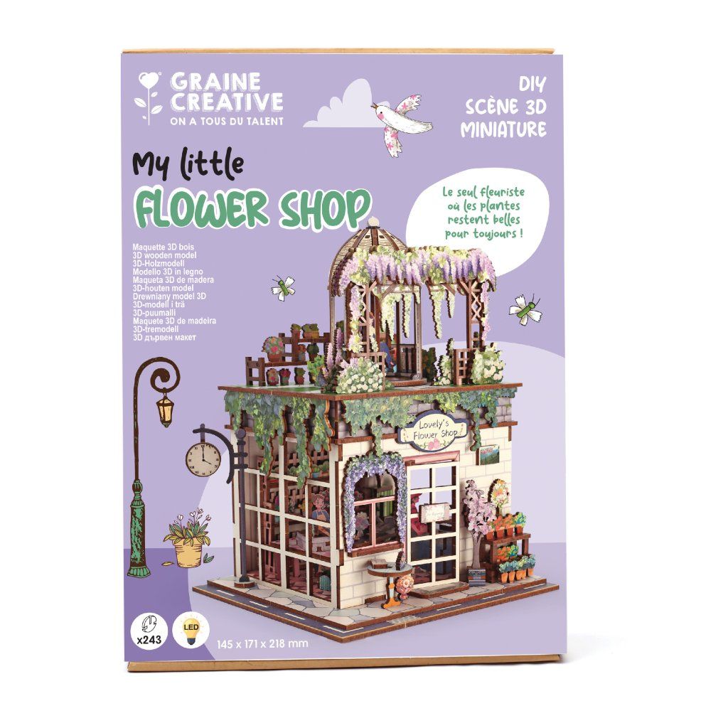 Hledáte způsob, jak se na chvíli přenést do světa fantazie? S touto úžasnou 3D dřevěnou stavebnicí si můžete postavit svůj vlastní rozkvetlý obchůdek úplně sami! Je to jako kouzlo – z hromady precizních dílků vám pod rukama vyroste detailní domeček plný barevných kytiček a stylových doplňků. A to nejlepší? Díky vestavěným LED světýlkům bude váš model večer krásně zářit a vytvoří ve vašem pokoji neopakovatelnou atmosféru.