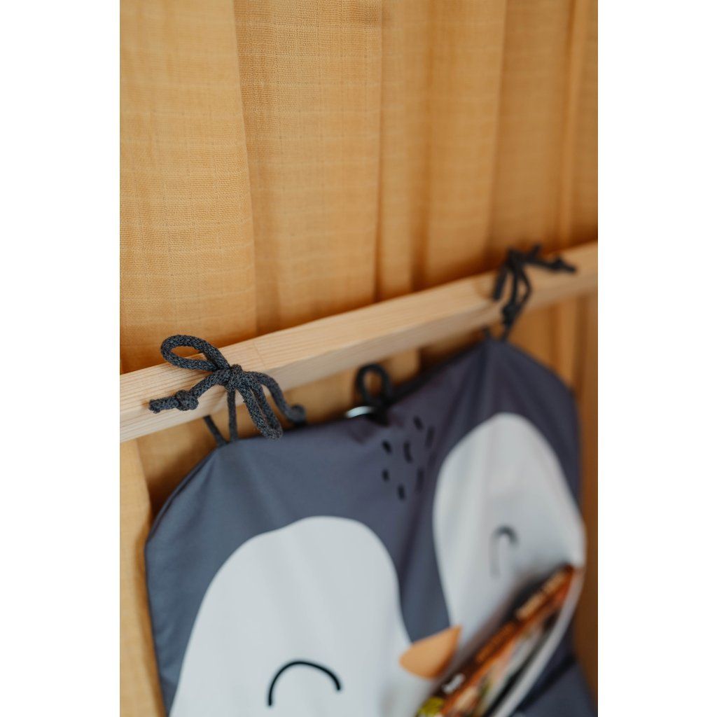 Látkový panel: Polyesterová tkanina (60 × 160 cm) s jemnější vazbou a autorskou ilustrací tučňáka.