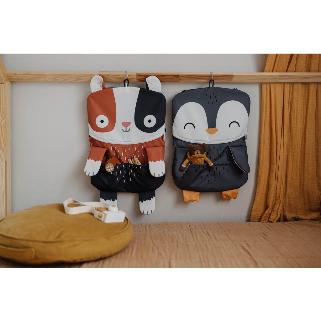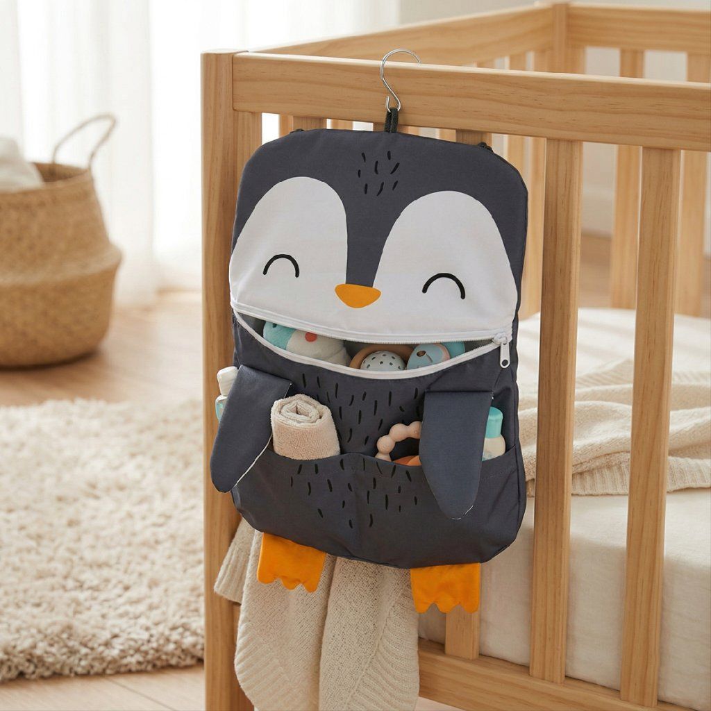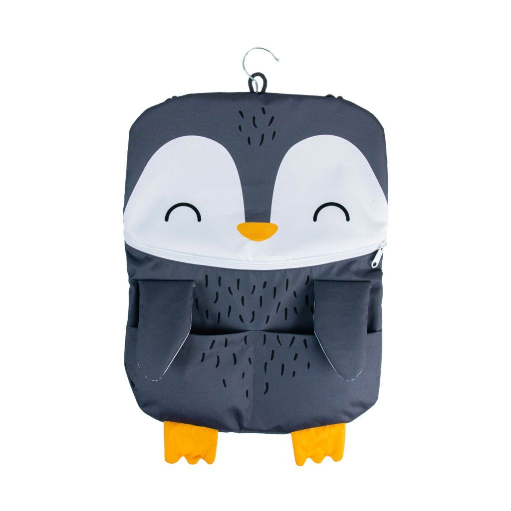 Kapsář je jeden z těch kousků, u kterých oceníte, že jste si je ušili sami. Na rozdíl od běžných textilních organizérů je tento tučňák vyrobený z pevného nepromokavého materiálu, takže zvládne i drsnější zacházení. Celý projekt jsme připravili jako efektivní zkratku – střih je natištěný přímo na panelu, což eliminuje chyby při přenášení z papíru. Výsledkem je funkční doplněk, který vypadá skvěle zavěšený na postýlce, ale i v šatně první třídy.