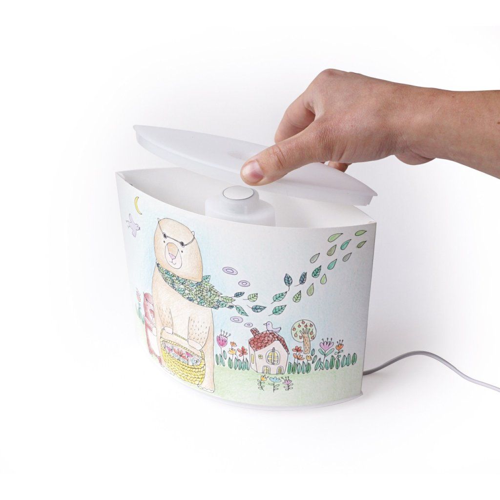 Lampička svítí ve čtyřech režimech – od tlumeného světla přes plný jas až po efekt mihotavé svíčky. Dvě klepnutí na tlačítko spustí hodinový časovač, takže děti klidně usnou se svým světýlkem a ono se samo vypne. Lampička, na které si dítě navrhlo vlastní stínidlo, je také originální dárek na narozeniny nebo Vánoce – pro děti, které rády tvoří.