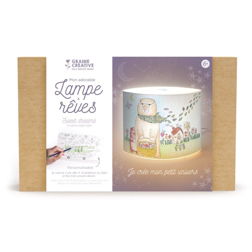 Většina lampičekvypadá stejně. Tato ne. Sweet Dreams od Graine Créative je kreativní noční lampička, jejíž stínidlo si děti vytvoří zcela podle sebe – vybarví jednu ze čtyř přiložených ilustrací, nakreslí vlastní motiv, vystřihnou vzory nebo použijí techniku razítek. Výsledkem je lampička, která v dětském pokoji svítí přesně tak, jak si to dítě představovalo – a žádná jiná taková nebude.