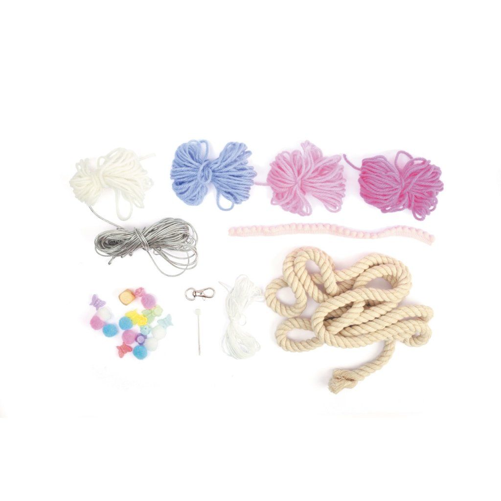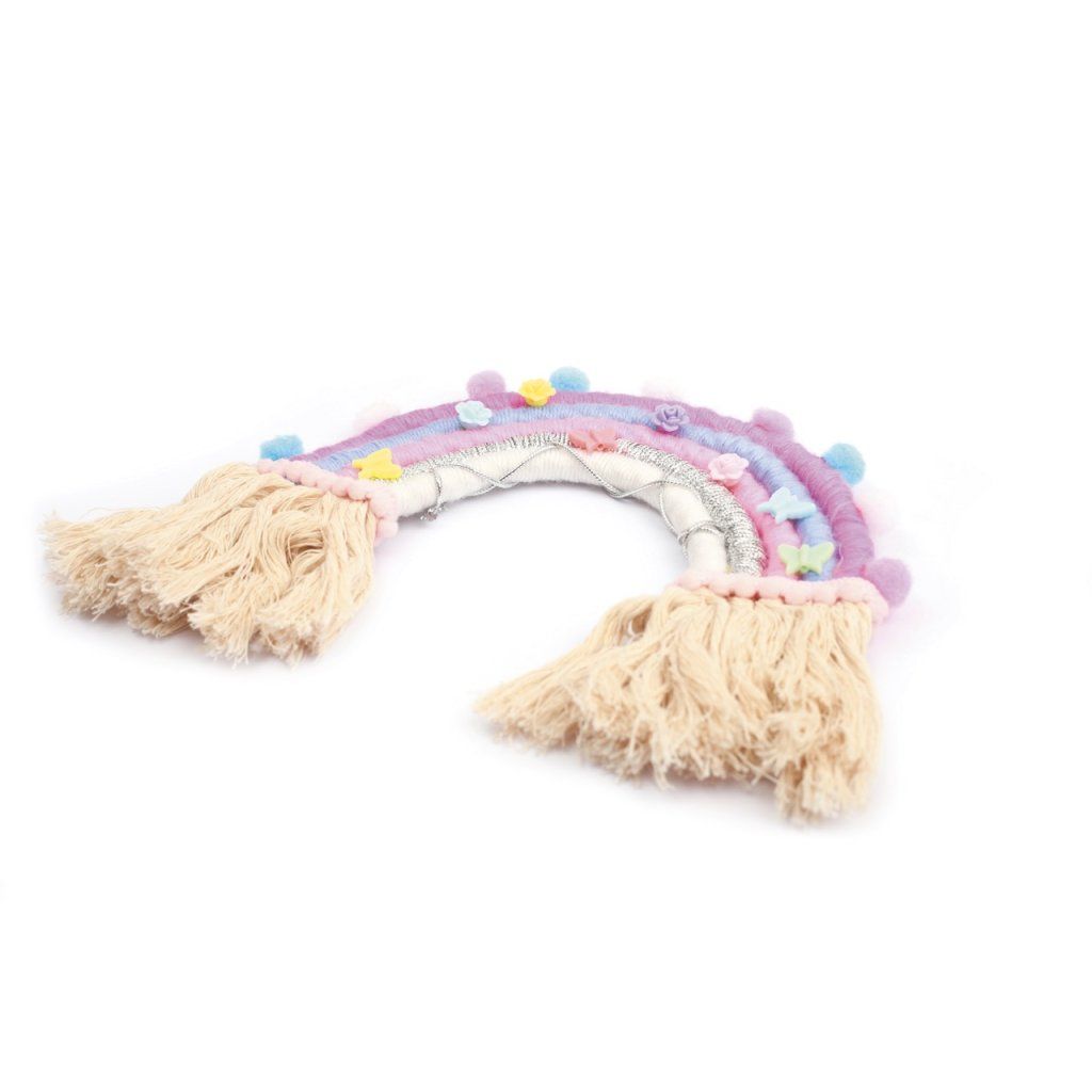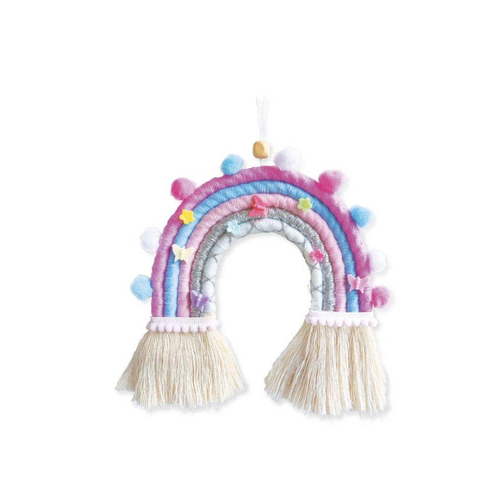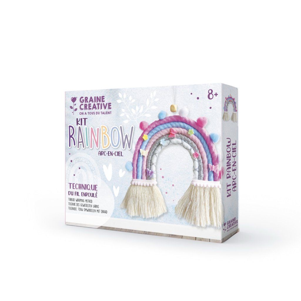 Pastelové barvy, pompomy, motýlci, kvetoucí detaily a hebké třásně – tahle duha není z nebe, ale z vašich rukou, a vydrží navždy. Technikou omotávání nití vznikne vrstva po vrstvě závěsná dekorace, která bude v dětském pokoji, na dveřích nebo nad postelí vypadat jako z módního obchodu s dekoracemi. A navíc si můžete vybrat: chcete velkou nástěnnou duhu, nebo menší přívěsek na klíče? Sada od francouzské značky Graine Créative zvládne obojí.