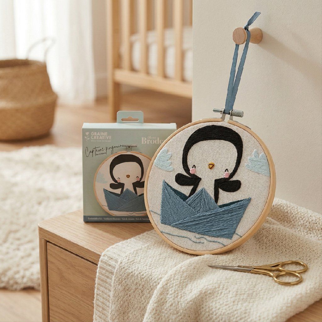 S jehlou v ruce se pusťte do mořského dobrodružství. Vyšívací sada Kapitán tučňák je perfektní vstupní branou do světa moderní výšivky – ať už pro dospělé, nebo pro děti. Díky technice plného plochého stehu (Satin Stitch) vám pod rukama ožije černobílý námořník v modré loďce, který se po vyšití může stát krásnou dekorací dětského pokoje. 🐧
