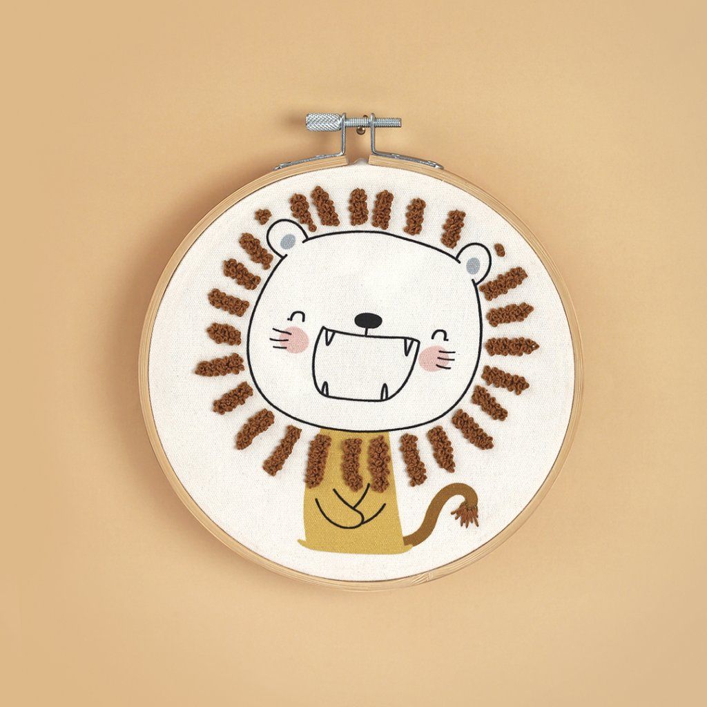 Vyšívání už dávno není jen o tenkých nitkách. Tenhle lvíček tě vezme do světa textury, kde je jehla jen začátek zábavy. Huňatá, smyčková hříva se vytváří jednodušší technikou (trochu jako punch needle), která je neuvěřitelně návyková a uvolňující. Je to ideální kreativní pauza pro tvou mysl a úžasný, hravý přírůstek na stěnu do dětského pokoje. Lvíček vypadá, že pořádně řve, ale jeho úsměv tě ujišťuje, že je to ten největší dobrák, který bude hlídat klidné sny.